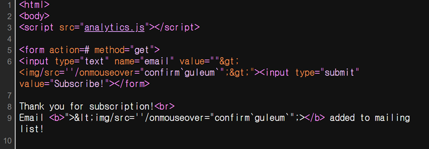์ ๋จ๊ณ์์ ์ฌ์ฉํ ๊ณต๋ฐฑ ์นํ ๊ตฌ๋ฌธ์ ์ฝ์ ํด๋ณธ ๊ฒฐ๊ณผ ์ฑ๊ณต์ ์ผ๋ก ์คํ๋์ง ์๊ณ ์์ต๋๋ค. ์ด๋ ํ ๊ตฌ๋ฌธ์ ๊ฒ์ฆํ๊ณ ์๋์ง ์์ค๋ฅผ ํตํด ํ์ธํด ๋ณธ ๊ฒฐ๊ณผ "()(๊ดํธ)"์ ํ์ ์ฐฝ์ ๋์์ฃผ๋ "alert"๊ฐ ํํฐ๋ง๋๊ณ ์์ต๋๋ค. ๊ดํธ์ ๊ฒฝ์ฐ ์ ๊ฑฐ๋ฅผ ํ๊ณ ์์ผ๋ฉฐ alert๋ -> Alert๋ก ๋ณ๊ฒฝ์ํด์ผ๋ก์จ ์๋ฏธ ์๋ ๊ตฌ๋ฌธ์ ๋ง๋ค๊ณ ์์ต๋๋ค.