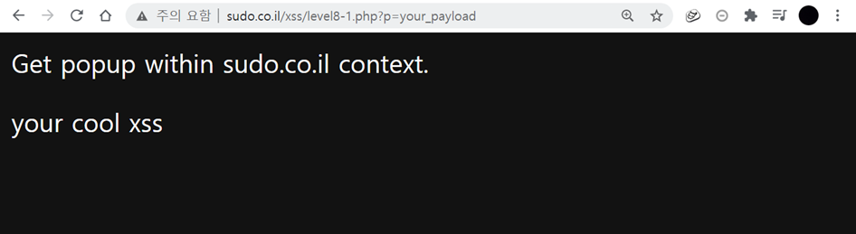 ์กฐ๊ฑด๋ฌธ์ด ์ฌ์ฉ๋ 8 Level์ ์ด์ด์ 8-1 Level๊น์ง ํ๋ฒ ํ์ด๋ณด๋๋ก ํ๊ฒ ์ต๋๋ค. ๋ง์ฐฌ๊ฐ์ง๋ก ๋งํฌ ํ๊ทธ๋ ์ ๋ ฅ์ ๋ฐ๋ ํผ์ด ๋ฐ๋ก ์กด์ฌํ์ง ์์ผ๋ฉฐ URL ํ๋ผ๋ฏธํฐ์ ์ ๋นํ ๋ฌธ์์ด์ ์ฝ์ ํ๋๋ก ํ๊ณ ์์ต๋๋ค.