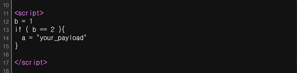 ์ด 2๊ณณ์ ์ค๋ฐ๊ฟ ์ฒ๋ฆฌ๊ฐ ๋์ด ์์ต๋๋ค. if ( b == 2 ){a = "Your_Payload"} ๋นจ๊ฐ์์ผ๋ก ์ฒ๋ฆฌ๋ ๋ถ๋ถ์์ค ๋ฐ๊ฟ์ผ๋ก ์ธํด ์ ๋ ฅ๋ ๋ฌธ์์ด์ด ์ค๋ฅ๊ฐ ๋ฐ์ํ๊ณ ์์ต๋๋ค.