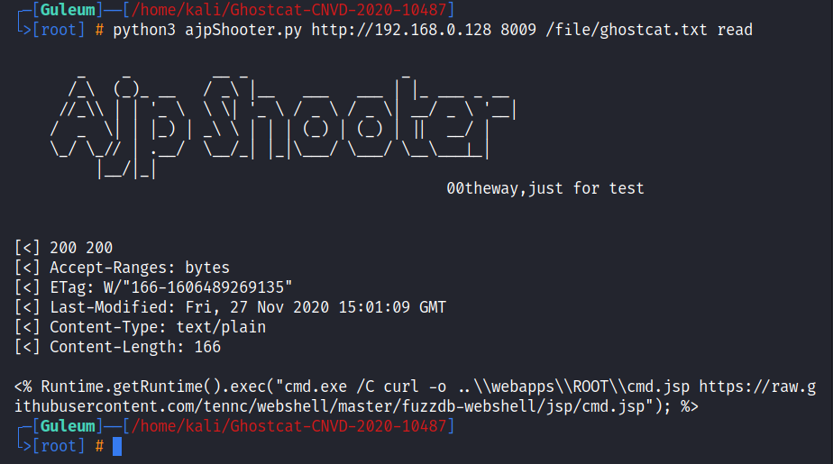 * POC μ°Έκ³ : https://github.com/00theway/Ghostcat-CNVD-2020-10487/blob/master/ajpShooter.py