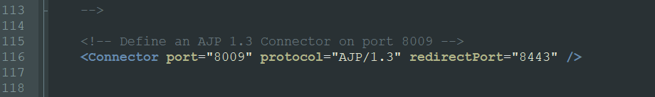 # <Connector port=”8009” protocol=”AJP”/1.3” redirectPort=”8443” /> μ£Όμμ²λ¦¬