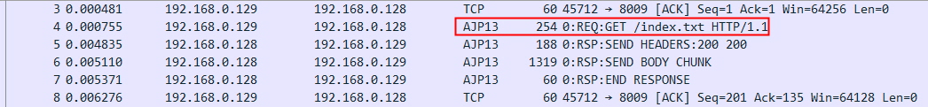 AJP Request Header μ 보λ₯Ό νμΈν΄λ³΄λ©΄ μμ² uri μ 보λ₯Ό index.txt ννλ‘ servlet_pathλ₯Ό λ³κ²½νμ¬ μ±κ³΅μ μΌλ‘ λ΄λΆ λ΄μ©μ κ°μ Έμ€κ³ μμ΅λλ€.