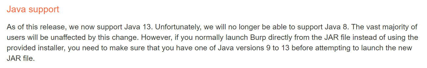 openjdk λ²μ μ 13 λ²μ λ κΉμ§ μ¬λ ΈμΌλ©΄ μ΄μ ν΄λΉ νκ²½μμλ 2020.04 λ²μ μ burpsuiteκ° κ΅¬λλ κ²μ λλ€.