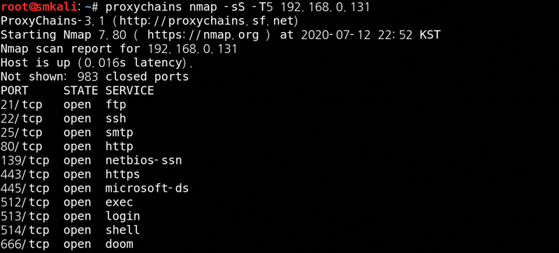 nmap ์ค์บ๋ ์ด์ธ์๋ ์ฐ๋ฆฌ์ 1๋ฑ ์ฅ๋๊ฐ์ธ metasploit์ msfconsole ๋ ํ๋ก์ ์๋ฒ๋ฅผ ๊ฑฐ์ณ ์ฌ์ฉํ ์ ์์ต๋๋ค.