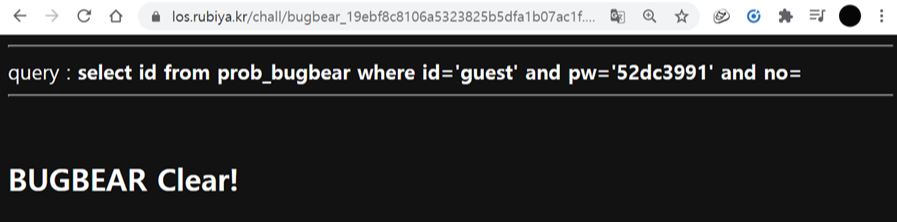 13๋ฒ์งธ ๋ฌธ์ ์ธ " bugbear "์ ๋๋ค. bugbear์ ๊ฒฝ์ฐ ๊ฒ์ฆํ๋ ํค์๋๊ฐ ๋ง์ด ๋์ด๋ ์ฐํ ๊ตฌ๋ฌธ์ ์ฌ์ฉํด์ ์ฟผ๋ฆฌ๋ฌธ์ ์์ฑํด์ผ ๋ฉ๋๋ค.