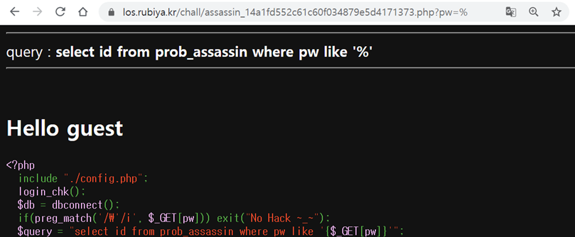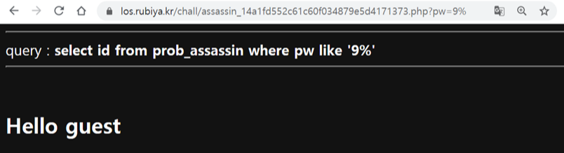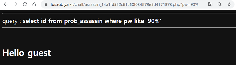 ์ผ๋จ " % " ๋ง ๋์ ํด๋ณด๋ฉด db๋ด์ ์กด์ฌํ๋ ์ต์๋จ์ ๊ณ์ ์ธ guest ๊ฐ ๋์ถ๋๊ฒ์ ํ์ธํ ์ ์์ต๋๋ค.