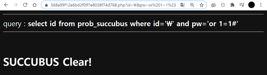 $query = "select id from prob_succubus where id='\'&and pw=' or 1=1%23