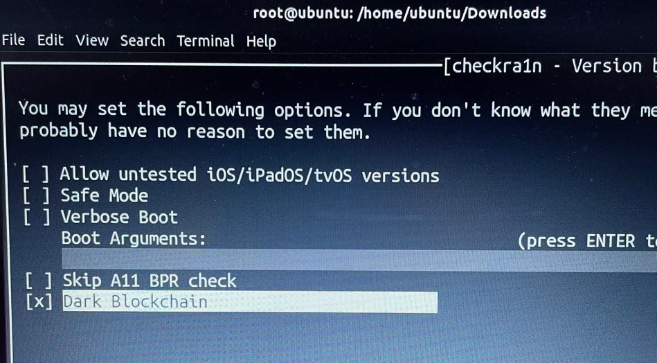 ํ์ฅ(Jailbreak) ํ๊ธฐ์ ์์ ์ต์ ์ ํ์ธํด๋ณด๋ฉด ๋ช ๊ฐ์ง ์ต์ ์ด ์กด์ฌํฉ๋๋ค. ๊ธฐ๋ณธ ๊ฐ์ผ๋ก๋ Dark Blockchain์ ์ ์ธํ๊ณ ๋ ๋ชจ๋ ์ฒดํฌ ํด์ ๋์ด ์์ง๋ง ํ์ฅ์ด ์ฌ๋ฌ ๋ฒ ์คํจํ๋ค๋ฉด ๋ค์ ์ต์ ๋ค์ ๋ชจ๋ ์ฒดํฌ ํ ์ฌ์๋ํด๋ณด๋ฉด ๋ฉ๋๋ค.
