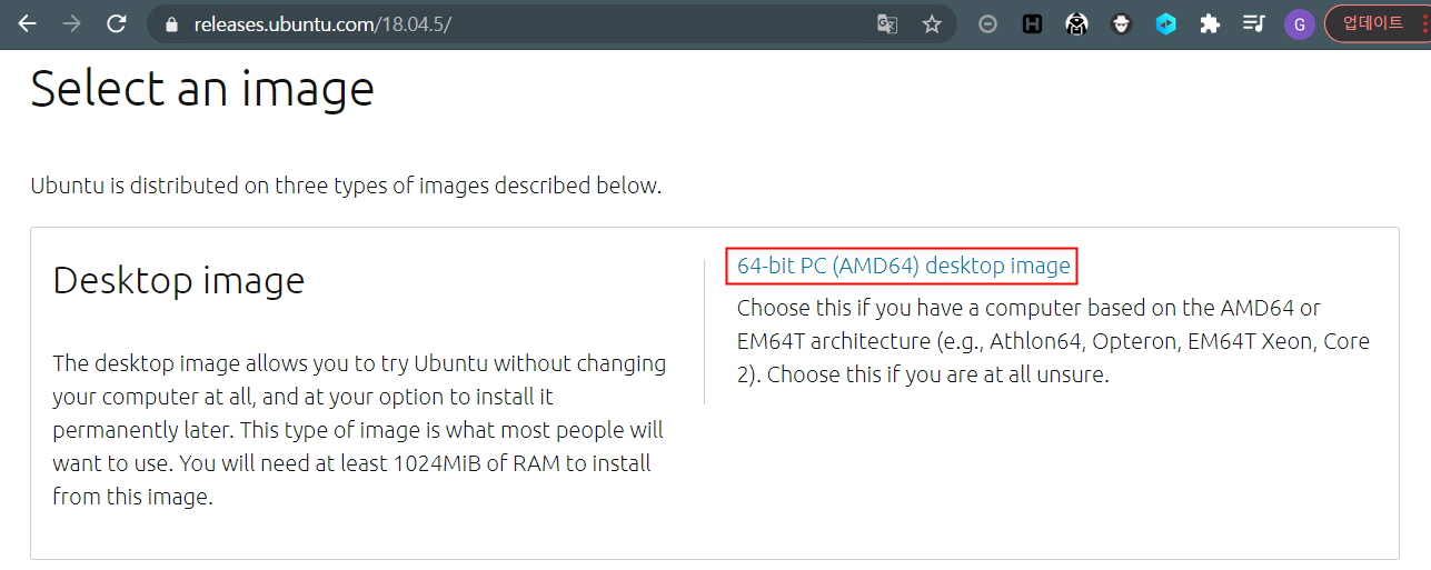 Select an image Ubuntu is distributed on three types of images described below. Desktop image The desktop image allows you to try Ubuntu without changing your computer at all, and at your option to install it permanently later. This type of image is what m