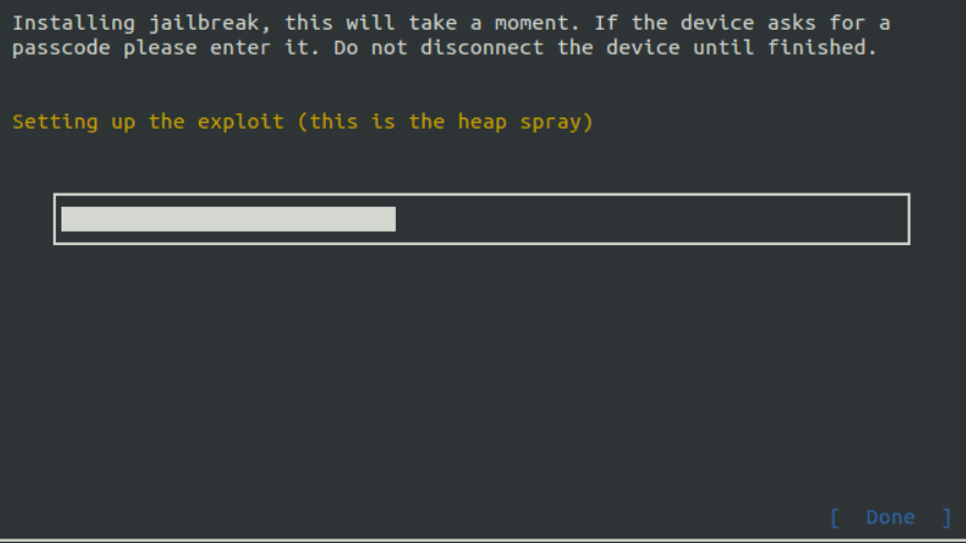 exploit์ด ์งํ๋๋ฉด์ ์์ ์ ๋จ๋ง๊ธฐ์๋ ์ฌ๋ฌ ๋ฉ์์ง๋ค์ด ๋ํ๋๊ธฐ ์์ํฉ๋๋ค. ์ต์ข ์ ์ผ๋ก ๋๋ ๋๊น์ง USB ์ผ์ด๋ธ์ ํด์ ํ์ง ๋ง๊ณ ๊ณ์ ์ ์ง์์ผ์ฃผ์ ์ผ ํฉ๋๋ค.