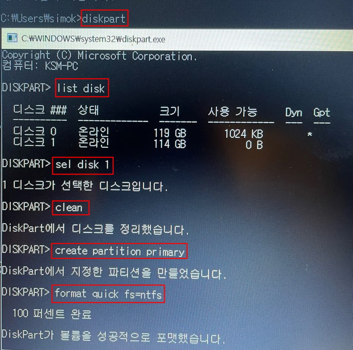 diskpart ์ ๋ ฅ ๋ฐ ์คํ