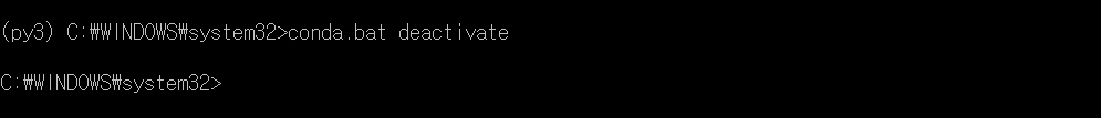 λ°λλ‘ conda.bat deactivate λͺ λ Ήμ μ λ ₯νλ©΄ κΈ°μ‘΄μ ν둬ννΈλ‘ λ€μ λμμ€κ² λ©λλ€.
