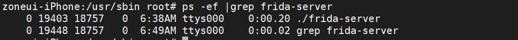ps -ef |grep frida-server #ํ๋ฆฌ๋ค ์๋ฒ๊ฐ ์คํ ์ค์ธ์ง ํ์ธ