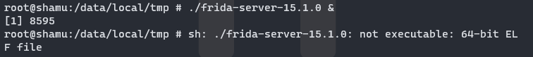 cd /data/local/tmp/ ๊ฒฝ๋ก์ frida-server ์กด์ฌ ์ ๋ฌด ํ์ธ