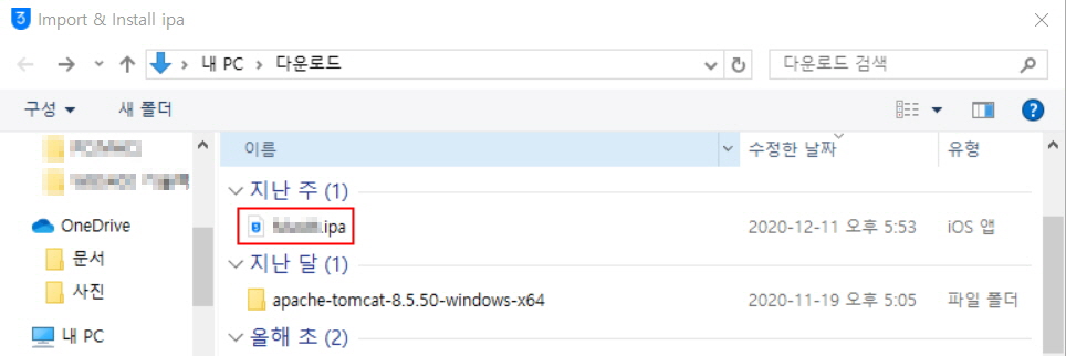 μλ¨μ Import & Install ipa λ²νΌμ΄ μλλ° μ΄κ²μ ν΄λ¦ν΄μ£Όμλ©΄ ipaνμΌμ μ νν μ μλ μ°½μ΄ λνλ©λλ€.