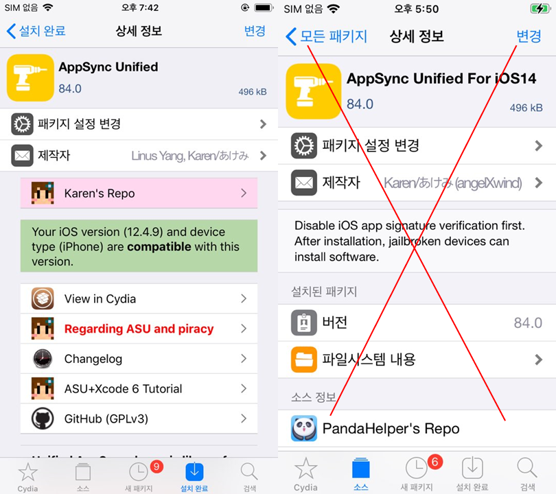 * iOS 14 λ²μ μ μ¬μ© μ€μ΄μ λΆλ€μ -> Panda Repoμ "AppSync Unified for iOS 14"λ κΈ°μ‘΄μ AppSync Unifedμ νμ¨μ΄ 체ν¬λ₯Ό 무μνκ²λ μμ λμ΄ λ°°ν¬λμ§λ§ μ λλ‘ μλνμ§ μλ κ²μ νμΈνμ΅λλ€.(iPAμ μ‘°κΈμ μμ μ΄λΌλ μμ κ²½μ° μ€ν¨ μλ¬ λ΄μ)