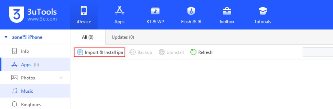 미리 μ€λΉν΄λ ipaνμΌμ ν΄λ¦νμ¬ μΆκ°ν΄μ£Όμλ©΄ 3 uToolsλ₯Ό ν΅ν΄ μ±μ μ€μΉνκ² λ κ²μ λλ€.