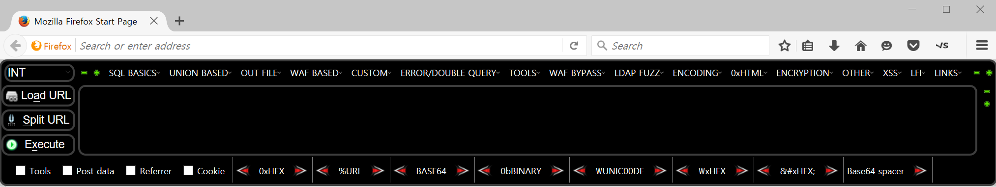 ๋ธ๋ผ์ฐ์ ๋ฅผ ์ฌ์์ํ๋ฉด ๋ธ๋ผ์ฐ์ ์๋จ์ ์ถ๊ฐ๋ Hackbar๋ฅผ ํ์ธํ์ค ์ ์์ต๋๋ค. ๊ธฐ์กด ์ต์ ๋ฒ์ ์ ์ถ๊ฐํ๋ Hackbar ๊ธฐ๋ฅ๋ณด๋ค ์ข ๋ฅ๊ฐ ๋ง๊ธฐ ๋๋ฌธ์ ํ๋์ฉ ํ์ธํด ๋ณด์๋ฉด์ ์ต์ํด์ง์๋ ๊ฑธ ์ถ์ฒ๋๋ฆฝ๋๋ค.