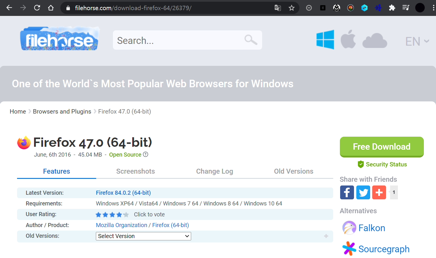 ํ๋จ์ ์ฃผ์๋ก ๋ค์ด๊ฐ Firefox 47.0 ๋ฒ์ ์ ๋ค์ด๋ก๋ํฉ๋๋ค. ๊ธฐ์กด์ ์กด์ฌํ๋ Firefox ๋ธ๋ผ์ฐ์ ๋ ์ญ์ ํด์ฃผ์๋ฉด ๋ฉ๋๋ค.
