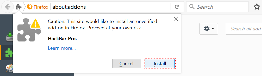 ๊ตฌ๋ฒ ์ ์ฉ Hackbar๋ฅผ ์ฌ์ฉํ๊ธฐ ์ํด์ ๋ฐ๋์ Firefox 47.x ๋ฒ์ ์ ์ ์งํด์ค์ผ ๋๋ ์๋ ์ ๋ฐ์ดํธ๋ฅผ ๊บผ์ค์ผ ํฉ๋๋ค.