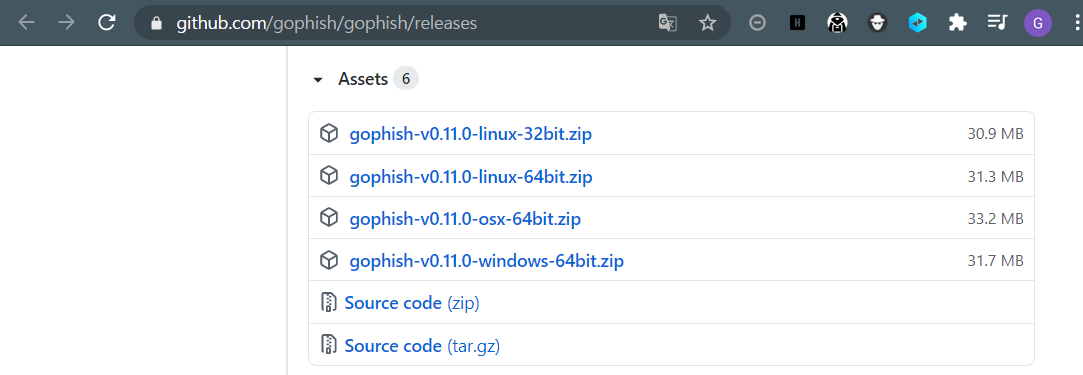 ํ๋จ์ ์ฃผ์๋ก ๋ค์ด๊ฐ ์ต์ ๋ฒ์ ์ Gophish๋ฅผ ๋ค์ด๋ก๋ํฉ๋๋ค. ์ ๋ ์๋์ฐ ํ๊ฒฝ์์ ์งํํ๊ธฐ์ Gophish-v0.11.0-windows-64bit.zip์ ๋ค์ด๋ก๋ํ์ต๋๋ค.