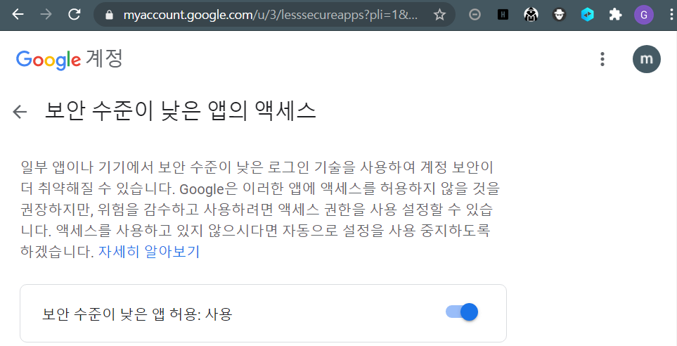 ๊ตฌ๊ธ ๊ฒ์์ "๋ณด์ ์์ค์ด ๋ฎ์ ์ฑ์ ์ก์ธ์ค"๋ฅผ ์ ๋ ฅํ์๋ฉด ์ค์ ์์น๋ฅผ ์ฝ๊ฒ ์ฐพ์ผ์ค ์ ์์ต๋๋ค. ๋ฉ์ผ์ ์ ์กํ๋ ์ฃผ์ถ ๊ณ์ ์ ์ฑ ํ์ฉ: ์ฌ์ฉ์ ํ์ฑํํด์ฃผ์๋ฉด ๋ฉ๋๋ค.