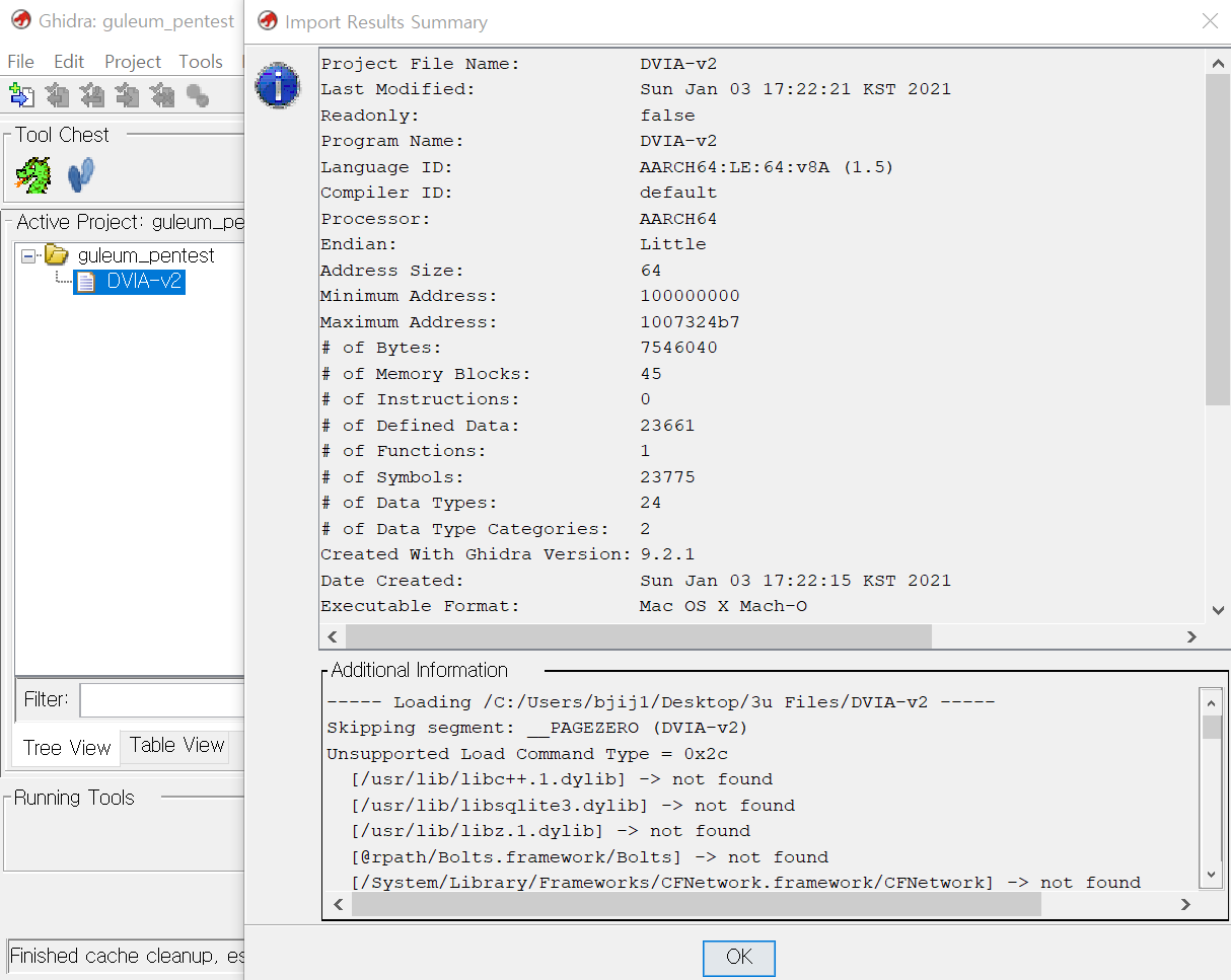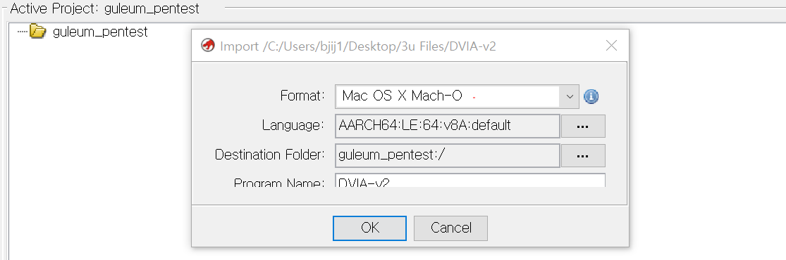 Ghidraμμ λμ λΆμμ μννκΈ° μ μ ν΄λΉ νμΌμ΄ Mach μ€λΈμ νΈ λ°μ΄λ리 νμΌμΈ κ²μ νμν΄ μ€λλ€. OKλ₯Ό λλ₯Έ ν κ³μ μ§νν©λλ€.