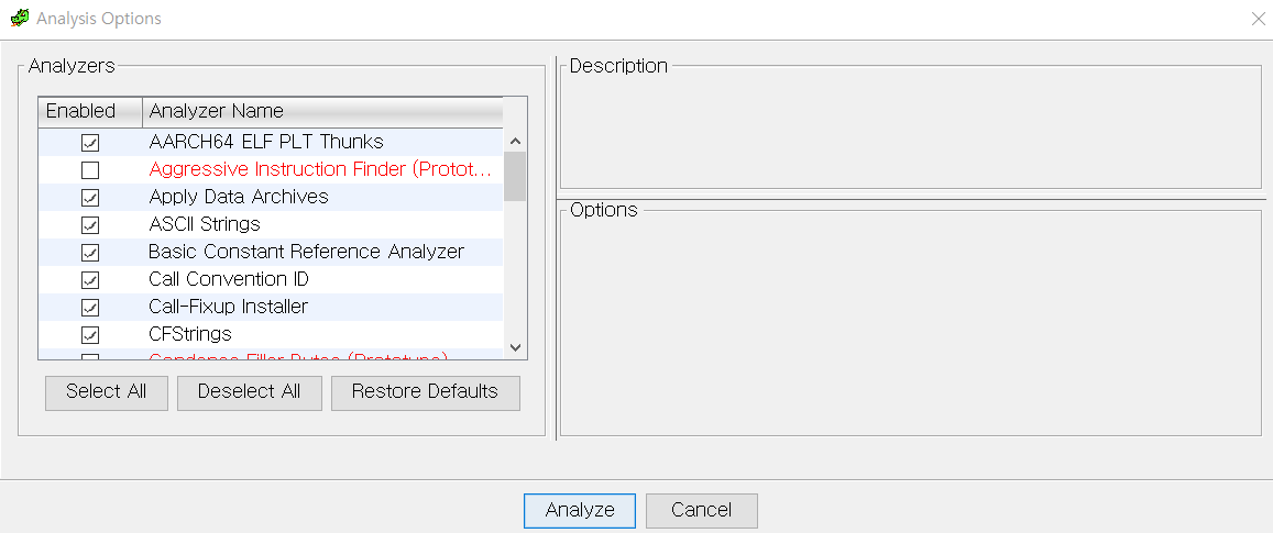 λμ λΆμμ μννκΈ° μ μ μ΅μ μ μ§μ ν μ μμ΅λλ€. κΈ°λ³Έ κ° κ·Έλλ‘ λκ³ Analyzeλ₯Ό ν΄λ¦νλ©΄ μ’ μ μ λλκ·Έ μ€ λλ‘ ν΄μ€ λ°μ΄λ리 νμΌμ λν μ λ°μ μΈ λΆμμ΄ μμλ©λλ€.