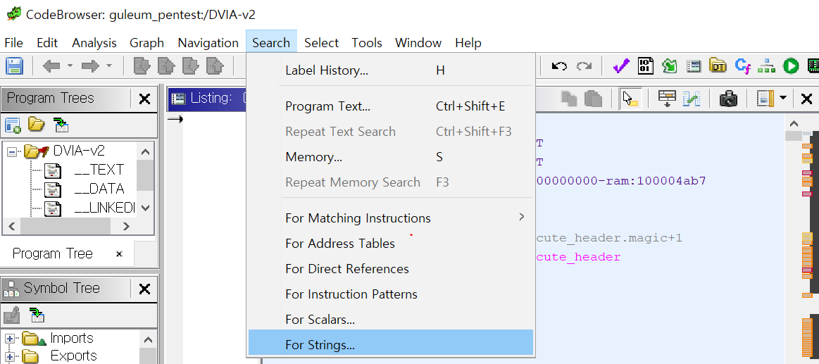 Ghidraλ₯Ό ν΅ν΄ νμ₯ νμ§λ₯Ό μ°ννκΈ° μν΄μ λμ μ±μ λν λ°μ΄λ리 νμΌμ λΆμν΄μΌ λ©λλ€. μ°μ λ²λ€ 컨ν μ΄λ κ²½λ‘λ‘ μ΄λν΄ DVIA-v2 λλ ν λ¦¬λ‘ μ κ·Όν©λλ€.