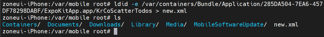 ldid -e binary๊ฒฝ๋ก > nex.xml