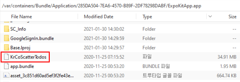 ๋ฒ๋ค์ปจํ ์ด๋ ๊ฒฝ๋ก๋ก ๋ค์ด๊ฐ ์ฑ์ ๋ฐ์ด๋๋ฆฌ ํ์ผ๋ช ์ ํ์ธํ๊ณ ๊ฒฝ๋ก๋ ๋ณต์ฌํด ๋ก๋๋ค.