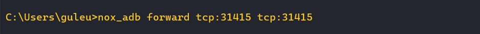 ์์ ์ ๋๋ฐ์ด์ค(Noxํ๊ฒฝ)์ ํต์ ํ๊ธฐ ์ํด์ ํฌํธ ํฌ์๋ฉ์ ํด์ฃผ์ ์ผ ๋ฉ๋๋ค. adb ๋ช ๋ น์ ์ฌ์ฉํ์ฌ ์ธ์์ tcp:31415 ํฌํธ๋ฅผ ํ์ฑํํด์ฃผ์๋ฉด ๋ฉ๋๋ค.