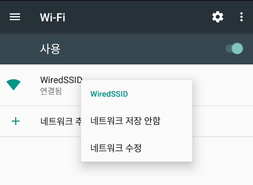 Nox ํ๊ฒฝ์ผ๋ก ์ ๊ทผํด Tool -> ๋ฌด์ ๋คํธ์ํฌ ์ชฝ์ WiredSSID๋ฅผ ์ฝ 2์ด๊ฐ ํด๋ฆญ์ ์ ์งํด์ฃผ์๋ฉด ์๋จ์ ์์ ๋ฒํผ์ด ๋ํ๋ฉ๋๋ค.
