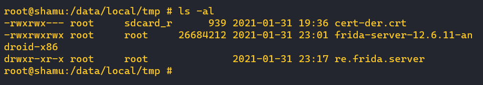 ls -al (frida-server ํ์ธ)