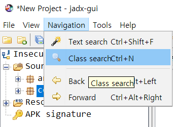 νμ₯μ μ°ννκΈ° μν΄μ insecurebankμ μμ€μ½λλ₯Ό μ볡 ννλ‘ λλ¦° ν μ μ λΆμμ μ§ννμ¬ νμ§ ν¬μΈνΈλ₯Ό μ°Ύμμ£Όμ μΌ λ©λλ€. μ λ insecurebank μ±μ. apkννλ‘ μΆμΆ -> jadxλ₯Ό μ¬μ©νμ¬ μ볡 νν μ½λ νμΈνλλ‘ νκ² μ΅λλ€.