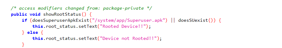 Text Search νμμ rootλ₯Ό κ²μνμ¬ rooting νμ§ κ΄λ ¨ μ½λκ° μ΄λ μμΉμ μ‘΄μ¬νλμ§ νμΈν΄μΌ λ©λλ€.