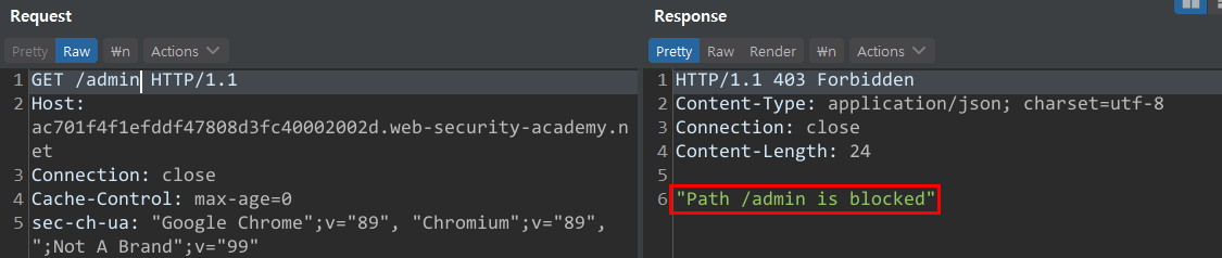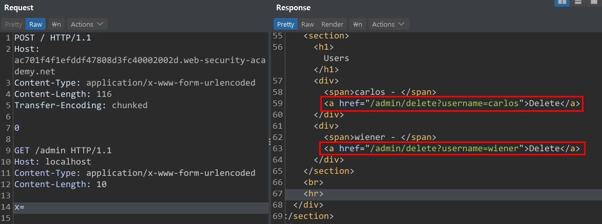 ๋ง์ฝ ๊ด๋ฆฌ์ ํ์ด์ง๋ก ์ ๊ทผํ๊ธฐ ์ํ /admin ๊ฒฝ๋ก๊ฐ ์ฐจ๋จ๋์ด ์๋ค๋ฉด Smuggling ์ทจ์ฝ์ ์ ์ ์ฉํ์ฌ ์ ๊ทผ์ด ๊ฐ๋ฅํ ์ ์์ต๋๋ค.