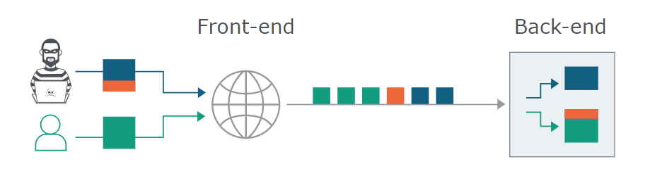 ์ฌ๊ธฐ์ ํ๋ก ํธ์ ์ญํ ์ LB(Load Balancer) ๋ RP(Reverse Proxy), CDN(Content Delivery Network)๊ฐ ๋๋ฉฐ ์ด๋ค์ ๋ค์ํ ์ฌ์ฉ์๋ค์ ์์ฒญ์ ๋ฐ์ ์ ๋ฌ ๋ฐ ๋ถ๋ฐฐ๋ฅผ ํด์ฃผ๋ ๊ณผ์ ์์ Back-end๊ฐ chunked ๋๋ Content-Length๋ฅผ ๋ง๋๋ฉด ์ง์ ๋ ๋ฐ์ดํฐ๋งํผ๋ง ์ฒ๋ฆฌํ๊ณ ๋๋จธ์ง๋ ํจํท์ ๋ฒํผ์ ์ ์ ๋จ๊ฒ ๋๋๋ฐ ์ด๊ฒ์ ํ ์ฌ์ฉ์๋ค์ ์ ์์ ์ธ ์์ฒญ์ ํ๋ฆ์ ๋ฐฉํดํ ๊ฐ๋ฅ์ฑ์ด ์กด์ฌํ๋ค๋ ๊ฒ์ ๋๋ค.