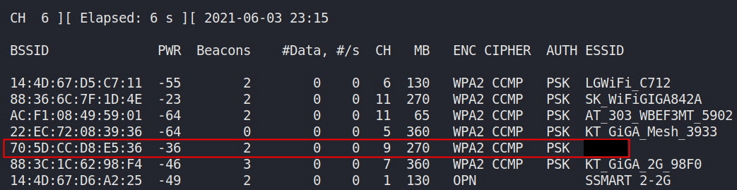 # airodump-ng wlan0mon