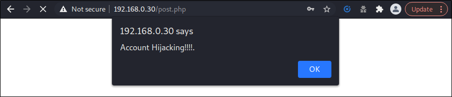 ํด๋น ์คํฌ๋ฆฝํธ๊ฐ ์ฝ์ ๋ ๋งํฌ๋ฅผ ํด๋ฆญํ ์ฌ์ฉ์๋ ๊ณต๊ฒฉ์๊ฐ ์ง์ ํด๋ ํํ์ ์ฝ๋๊ฐ ์คํ๋๊ฒ ๋๋ฉฐ ์ด๋ฌํ ๋ก๊ทธ์ธ ์ธ์ ์ ๋ณด๋ ๊ณต๊ฒฉ์์๊ฒ ๋์ด๊ฐ๊ฒ ๋๋ ๊ฒ ์ผ๋ฐ์ ์ธ ํํ์ ๋๋ค. ํ์ง๋ง ์ฝ๋๊ฐ ์คํ๋๋ฉด ์ธ์ ์ ๋ณด ๋ง๊ณ ๋ ํ์คํ ๊ฐ์ ์ป๊ธฐ ์ํด ๋์ผํ ํผ์ฑ ํ์ด์ง๋ก ๋๊ธฐ๋ ๋ฐฉ๋ฒ๋ ๊ด์ฐฎ์ต๋๋ค. ๊ฐ์ฅ ๊ณ ์ ์ ์ธ ํํ์ง๋ง ์๋์ ์ธ ๊ฒฐ๊ณผ์ ์ฌํ๊ณตํ ๊ธฐ๋ฒ์ด๊ธฐ ๋๋ฌธ์ ์์ง๊น์ง ๋ง์ด ์ฌ์ฉ๋ฉ๋๋ค.