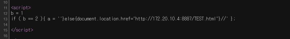 elseλ₯Ό μ μΈνμ¬ μμΈμ²λ¦¬μΌ λ μ½λκ° μ€νλλλ‘ κ³΅κ²©μ μλ²μ λ΄κΈ΄ μ½λλ₯Ό λ‘λνλλ‘ document.location.href μ μ μΈν΄μ μ§νν΄λ³΄κ² μ΅λλ€.