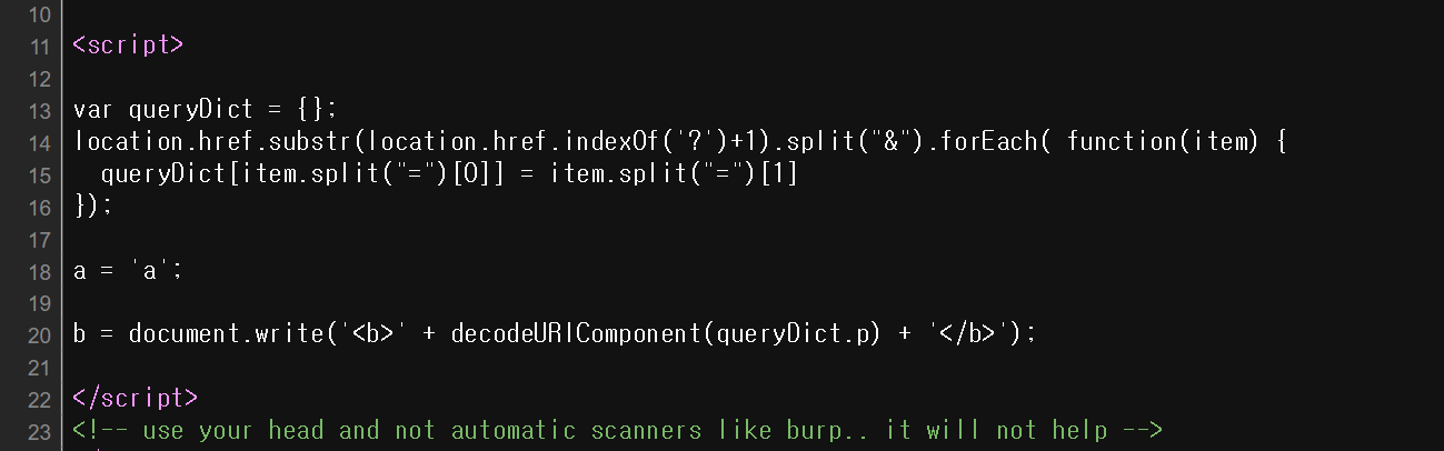 ์ด๋ฒ์๋ ๋ค์ ๋ณต์กํ ์ฝ๋๋ค๋ก ๊ตฌ์ฑ๋์ด ์์ต๋๋ค. .php?p=์ ์ ๋ ฅ๋ Payload๋ "a"๋ผ๋ ๋ณ์์ ๋ด๊ธฐ๊ฒ ๋ฉ๋๋ค.