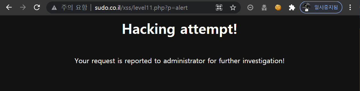 11๋จ๊ณ์์๋ถํฐ๋ ์คํ ๊ฐ๋ฅํ ์ ๋ ฅ ๊ฐ ์ด์ธ์๋ ๋ชจ๋ ์์ธ์ฒ๋ฆฌ๋ฅผ ์งํํ๊ณ ์์ด ๋ณ๋์ ๋ธ๋ก ํ๋ฉด์ด ๋ํ๋๊ฒ ๋ฉ๋๋ค. ์ด๋ฌธ์ ๋ฅผ ํธ์ ๋ถ๋ค์ ์ "Hacking attempt" ํ๋ฉด์ ์์ญ ๋ฒ ๋ดค์ ๊ฒ์ด๋ผ ์๊ฐํฉ๋๋ค...