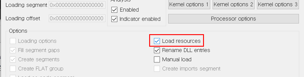 λΆμνκ³ μ νλ λ°μ΄λ리 νμΌμ Attach νλ©΄ μμ κ°μ μ°½μ΄ λνλ©λλ€. λ¬Έμμ΄μ΄ 리μμ€ νμΌμ μ μ₯λ μλ μκΈ° λλ¬Έμ "Load resources" λΆλΆμ 체ν¬λ₯Ό λλ₯΄κ³ μ§ννλλ‘ νκ² μ΅λλ€.