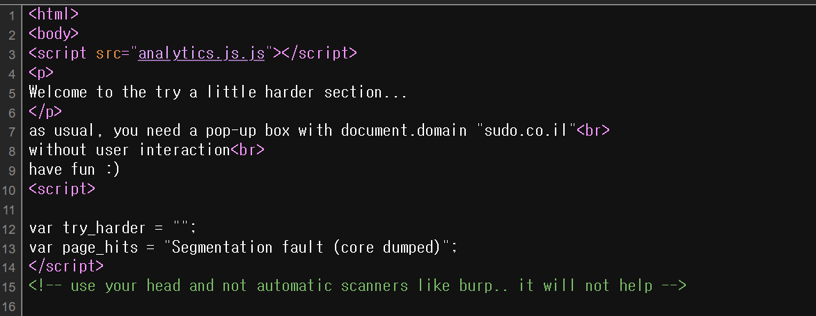 보μ΄λ ν¬μΈνΈκ° λ± 2κ³³μ΄ νμΈλ©λλ€. 첫λ²μ§Έλ analytics.js.js λΆλΆκ³Ό try_harder λ³μμ λλ€.