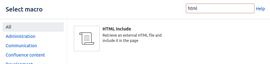 2.Select System from the drop down and search for the Confluence HTML Macros system app.